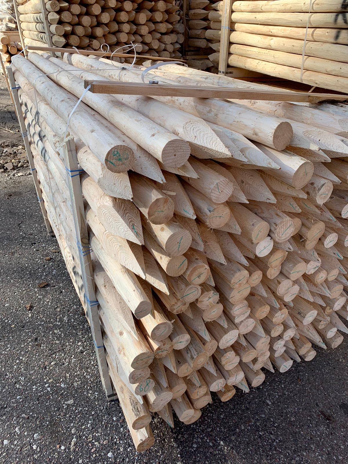 Машинно закръглените стълбове, заострени в единия край и леко скосени на противоположния край в Redwood са достъпни изключително чрез Imco Timber.