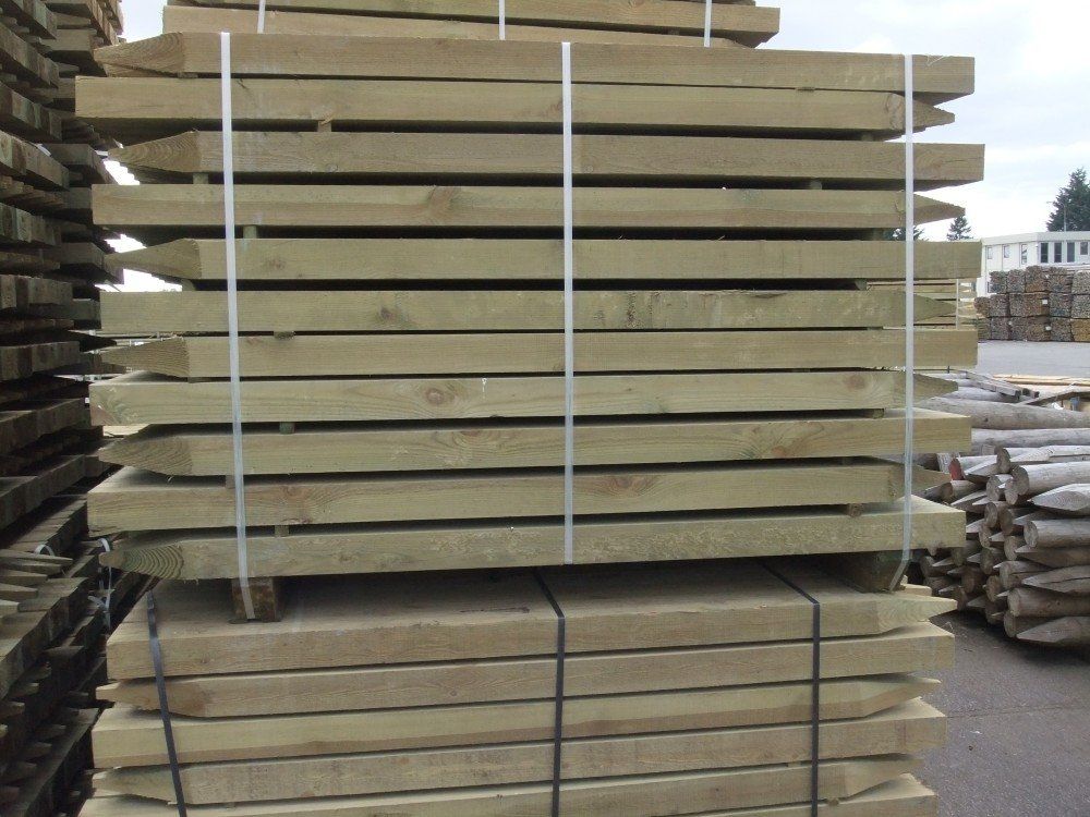 Quadratische Pfosten (mit oder ohne spitzen / abgewetzten Enden), gesägte Seitenbretter wie 22 x 100 mm und Schienen wie 38 x 87 mm x 3,66 m werden auf Bestellung im Sägewerk unseres lettischen Partners hergestellt. Diese können nach Kundenwunsch behandelt oder unbehandelt werden. Die Behandlung von UC4 ist auch für einige Produkte verfügbar, z. B. für Redwood-Pfosten für Zaunprojekte auf Gestüten.